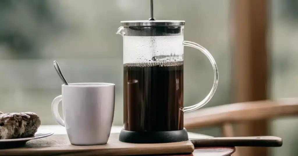 Método de inmersión: añades café y agua, esperas, luego presionas el émbolo. Molienda gruesa recomendada, tiempo de contacto de 4 a 5 minutos (dependiendo del gusto). La taza tendrá mayor cuerpo y textura, ideal para quienes gustan de cafés más “llenos” y menos filtrados.